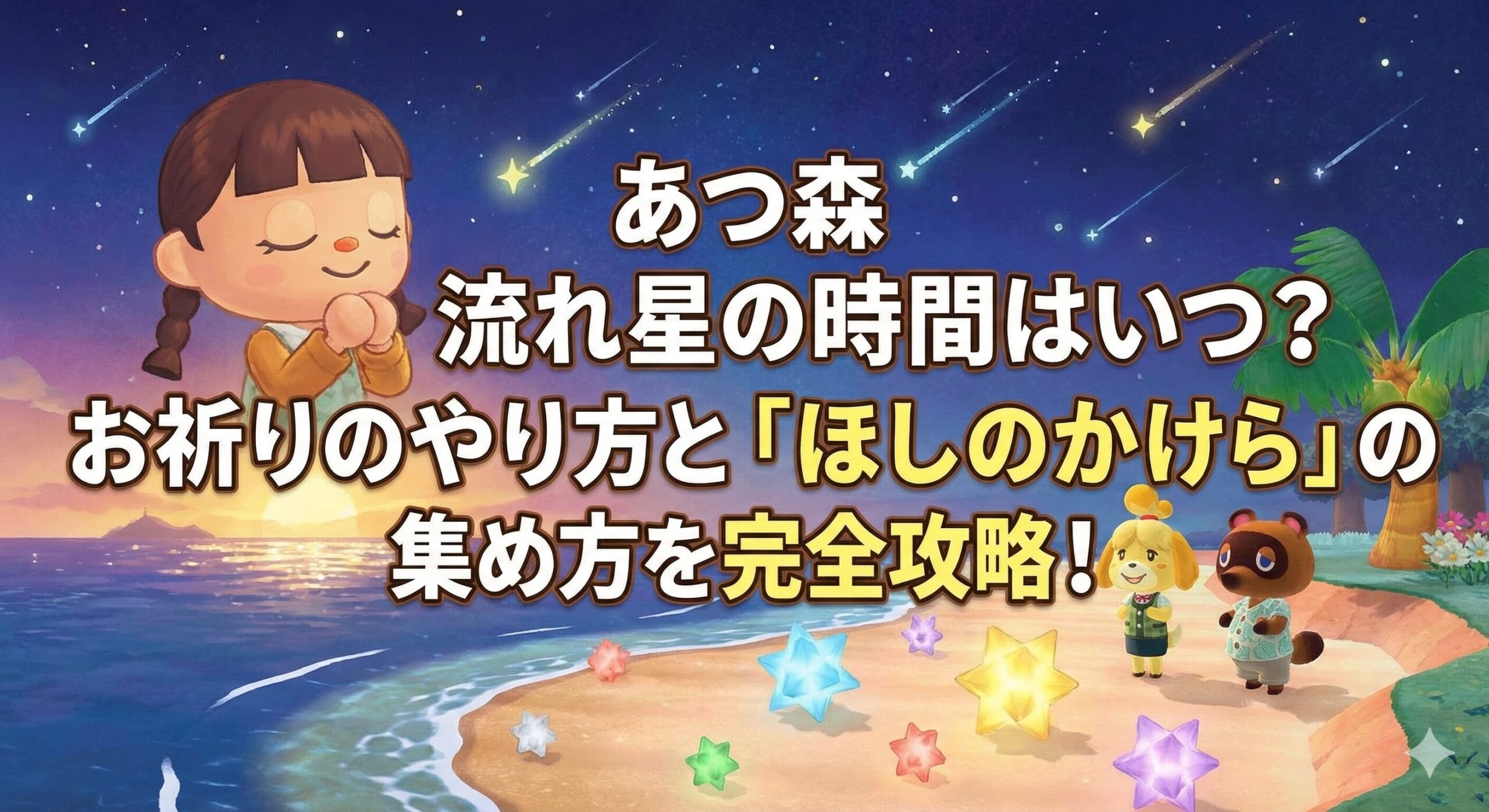 この記事では、流れ星(流星群)の発生時間や条件、見つけられない時の対処法から、お祈りの具体的なやり方、そしてDIYの重要アイテム「ほしのかけら」の効率的な集め方まで、どこよりも詳しく解説します。