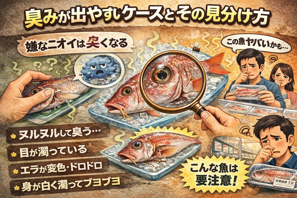 おじさんの魚は正しく扱えば臭みの少ない白身魚ですが、条件がそろうとどうしても生臭さが出やすくなります。特に注意したいのは、購入時点ですでに鮮度が落ちかけているケースや、持ち帰り・保存の段階で温度管理が不十分だった場合です。こうした状態の魚は、見た目がそこまで悪くなくても、調理したときに匂いが強く出てしまうことがあります。