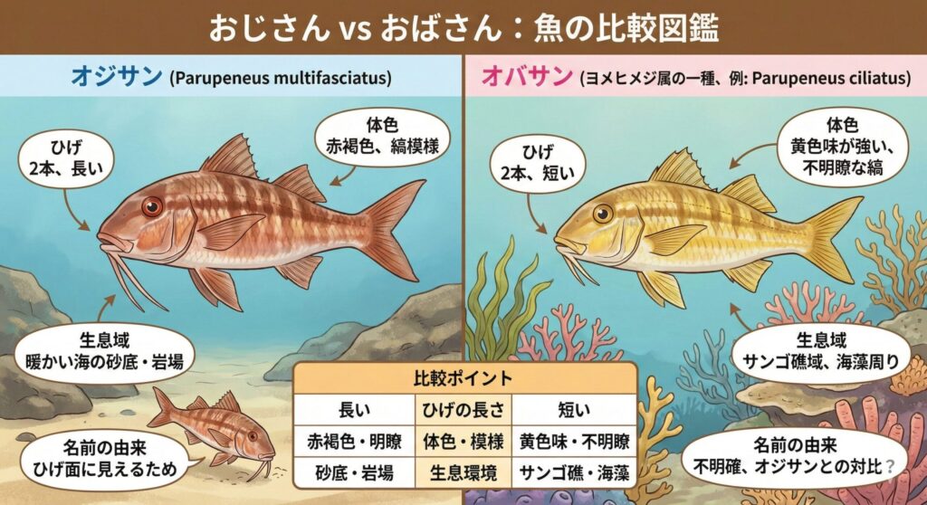 これらの魚は、体型や顔つき、体色の違いによって「おじさん」と「おばさん」と呼ばれることが多いですが、どちらも海の底で生活するため、同じ環境に生息していることも珍しくありません。生息場所や捕食対象が似ているため、混同されやすいですが、観察するとそれぞれの個性が見えてきます。